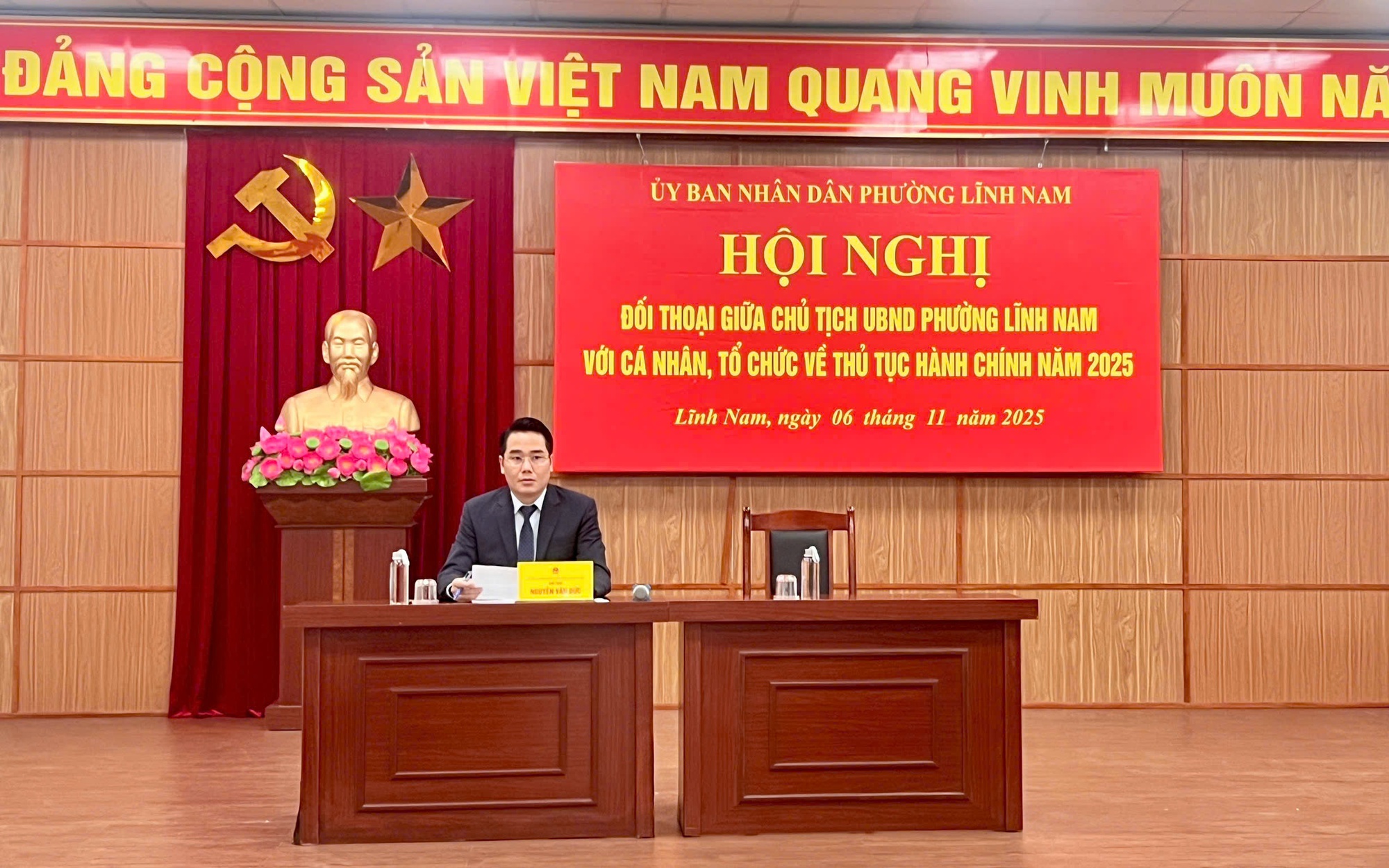 Với tinh thần cầu thị, sẵn sàng lắng nghe, Chủ tịch UBND phường Lĩnh Nam Nguyễn Văn Đức đã cung cấp số điện thoại của mình tại hội nghị đối thoại để nhân dân có thể trao đổi về các vấn đề cần phản ánh.
