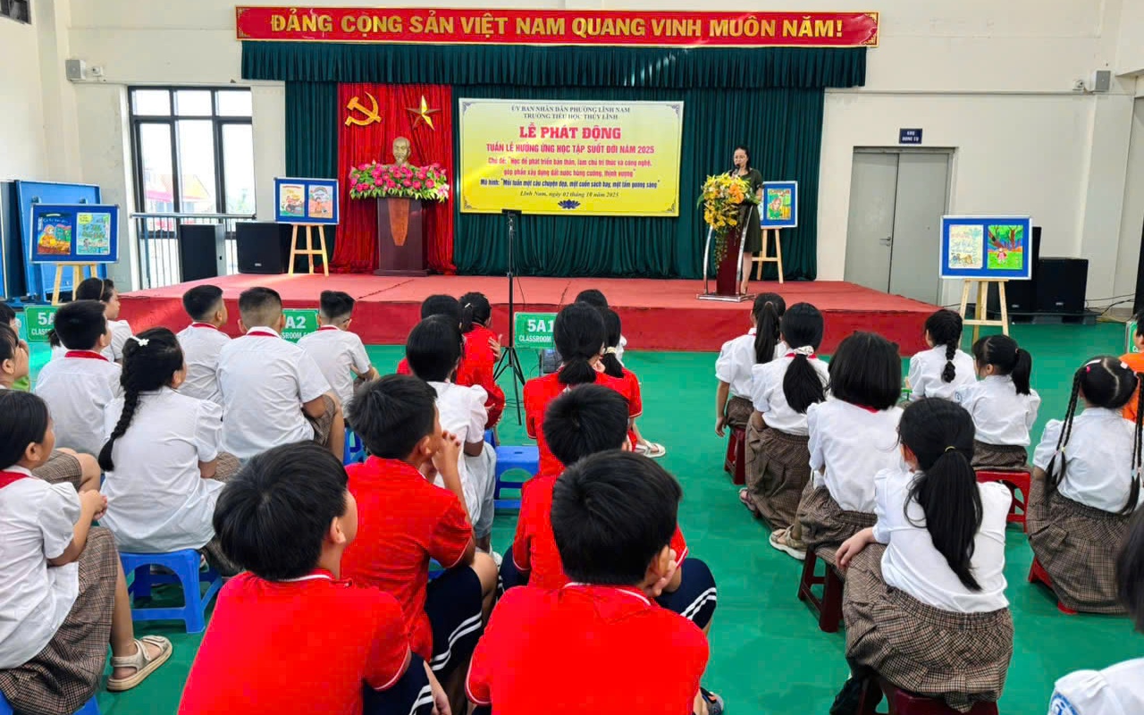 Buổi lễ phát động Tuần lễ Hưởng ứng Học tập suốt đời năm 2025 đã để lại ấn tượng sâu sắc với những thông điệp đầy ý nghĩa: "Học để phát triển bản thân, làm chủ tri thức và công nghệ, góp phần xây dựng đất nước hùng cường, thịnh vượng." Những thông điệp ấy không chỉ truyền cảm hứng mà còn trở thành nguồn động viên mạnh mẽ, nhắc nhở thầy cô giáo và các em học sinh trường Tiểu học Thúy Lĩnh rằng học tập là hành trình không bao giờ kết thúc.